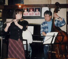| 5月10日(木)のグレッチは栗田敬子のバーズディ・ライブ〜全部見せます〜。木曜バンドでは、誕生日の人が普段やらないこともやってみせることになっています。私は大学で一応専攻していたヴァイオリンを相当久々に引っ張り出して演奏しました。演奏の良し悪しがどうのこうのと言うレベルではありませんが、ヴァイオリンの音色が新鮮だったようで、好評を頂きました。(^-^) |