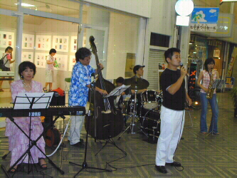 今治の商店街の土曜夜市にジャズパラダイスのメンバーで