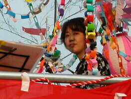 櫓の上での演奏は初体験でした。ステージの櫓を見て「この上で演奏するの〜?」とビックリ!。演奏の前に味酒小学校児童による金管バンドの演奏がありました。ヴォーカルの松原純子は夏まつりらしく浴衣で登場。 「シカゴ」をみさけ・音頭バージョンで演奏したり、味酒小の校歌をサンバにアレンジ、味酒小の姉妹校の内子町長田小の校歌をスイングにアレンジして演奏。味酒小の校歌は子供達が一緒に歌ってくれました。