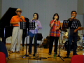 当初は1000円分のものを用意する予定でしたが、当日、簡単なものに変更致しましたので、参加費を300円に変更させていただきました。差額の700円は、エスパス21から各バンドの代表の方に、郵送にて返金させていただきますので、よろしくお願いします。最後に撮った集合写真を添えました(写ってない方、ごめんなさい)。