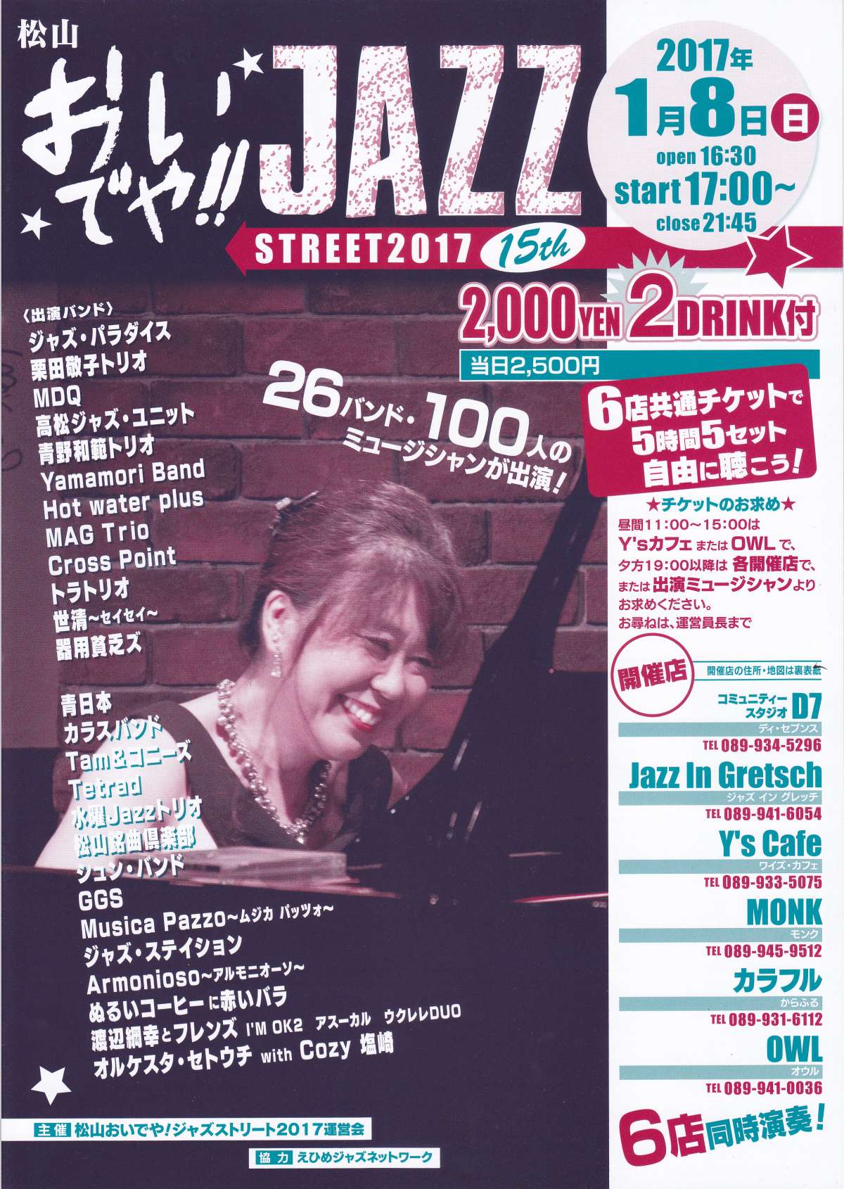 | 主催 おいでや!ジャズ2017運営会 | 協力 えひめジャズネットワーク |