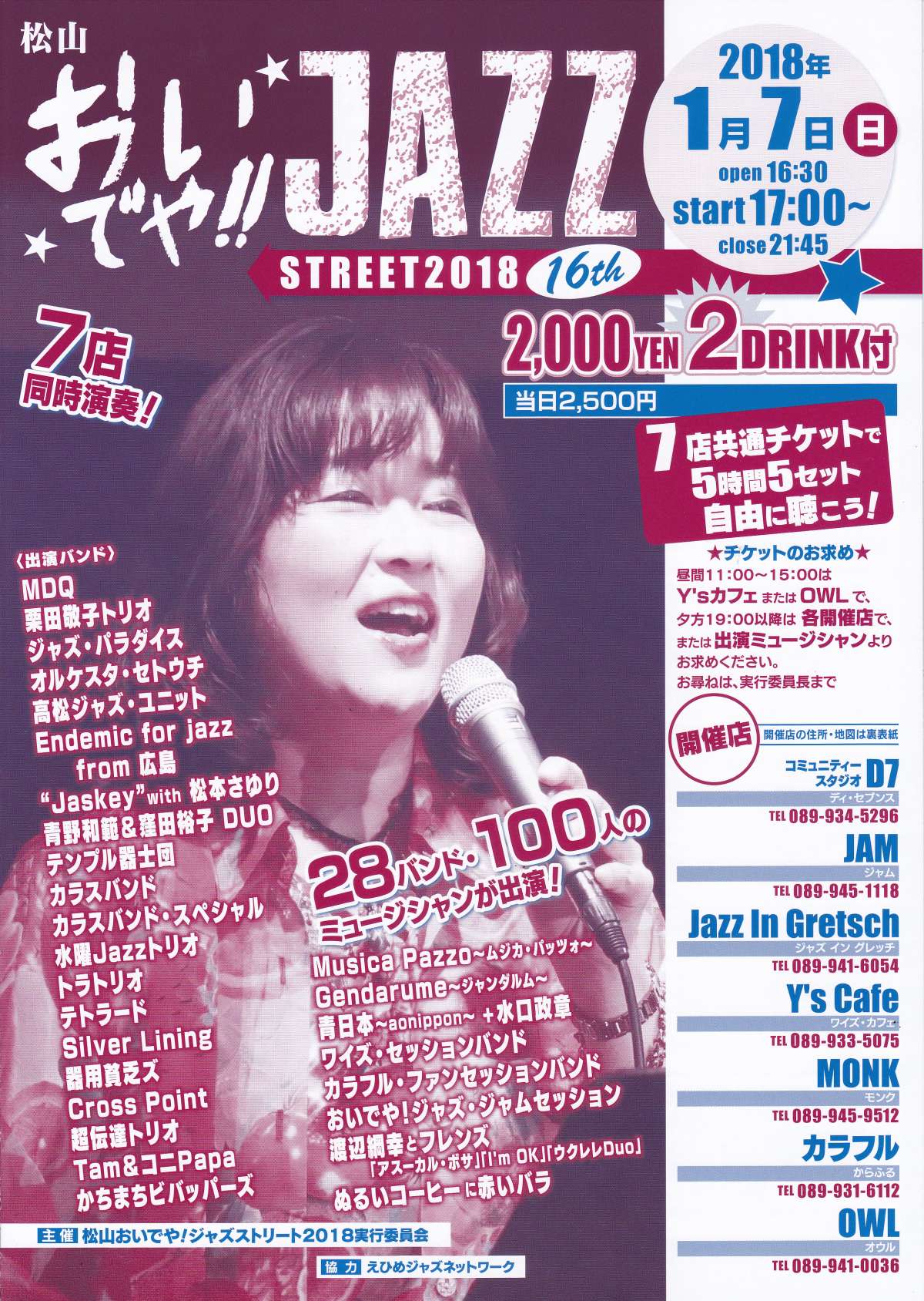 | 主催 おいでや!ジャズ2018委員会 | 協力 えひめジャズネットワーク |
