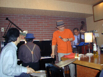 | 2001年9月28日、50歳前後のおじさん竹内学(Vo) 玉貫眞比古(Pf) 大野英孝(Bs) 内田修一(Dr)の4人で結成。とりあえず松山おじさんジャズバンド(通称おじばん)で名付けたら、そのままバンド名になった。初練習がセッションになったり、お客さんに「ぬるいコーヒーのようじゃ!」と叱咤を受けたりと、紆余曲折・試行錯誤の練習を経て、2002年3月20日モカモカでデビュー。以後毎月ライブを経験する。 |
