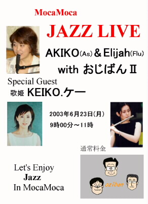 AKIKO& ELIJAH With おじばんU LIVE In MocaMoca "Special Guest 歌姫KEIKO・ケー” |