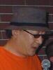 | ”ひでくん”(Bs) クラッシュ・ジャズ・オーケストラで活躍中。最近コンボ系ジャズにも引っ張りだこの人気。ジャズと酒と山歩きをこよなく愛す。週に5日間音楽三昧、毎日飲酒、その後ぶらりと1週間独り山歩きに出かけても家庭内騒乱が起こらない不思議なひと。イガグリ頭に巻いたバンダナがよく似合う。ベースを弾くときの至福の表情が可愛いと評判。公務員。 |