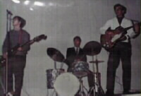 | 高校生 | 中学2年にアコースティック・ギターを買い、中学3年からバンドでエレキベースを弾きました。高校3年生の文化祭です。ビートルズやベンチャーズが大好きでした。バンド名Hell's Angels | |