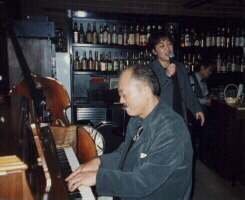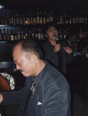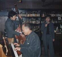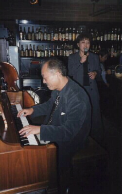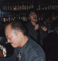 翌日のJR松山駅リニューアル記念ジャズコンサートのため来松された辛島文雄(P)さんがキーストーン・バーに遊びに来てくだいました。辛島さんのピアノで歌う私。気分は最高!吉岡英雄(B)さんも参加。