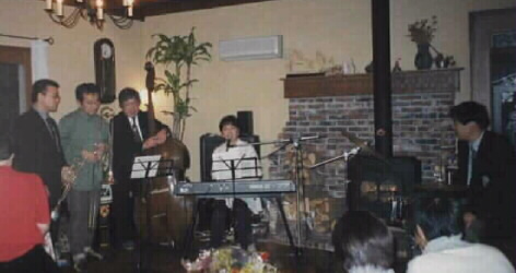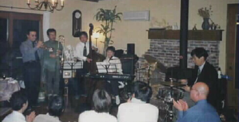 家庭的な穴場的料理屋さんです。暖炉を囲んでホーム・パーティの様なクリスマス・ライブです。
