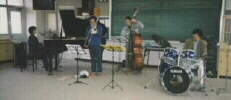 谷口さんが指導していらっしゃる、周桑郡小松中学校「小松タイム」軽音楽クラブにて演奏。広い音楽室に1年生から3年生約40人が集まってくれました。みんななぜか遠巻きに座っていました。今ヒット中の「エヴリシング」を歌ったら、女子生徒が一緒に歌ってくれました。