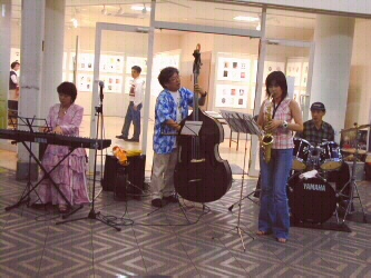 今治の商店街の土曜夜市にジャズパラダイスのメンバーで