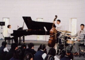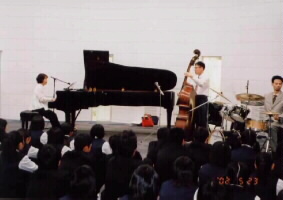 どちらかというと、先生方や、父兄の方が楽しんで下さっていたような気がします。コンサート終了後、生徒会長さんからお礼の言葉を頂きました。「ジャズは栗田さんが言われてように大人の音楽と思いました。まだよくわからなかったけど、つい指が動いて拍子をとったりしていました」という正直な感想が印象的でした。