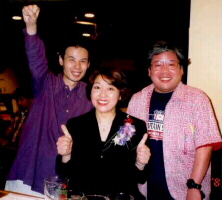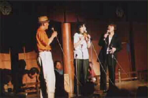 坊っちゃんジャズフェスティバル2002に出演の皆様、おつかれさまでしたー!!\^o^/。出演されなかった方もチケット販売や、広告、裏方など、ご協力頂きましてありがとうございました。お陰様でたくさんのお客様にお越し頂きました。嬉しかったですねー。進行も大変スムーズで、予定より10分ほど早く終演となりました。ちょうど3時間です。司会も素晴らしかったです。大役をしっかりつとめていただきました。ありがとうございました。お疲れさまでした。外人さんたちもとても喜んでくれました。愛媛新聞事業局のMさんが「素晴らしいコンサートでした!。素人の発表会程度だろうと思っていたのですが間違いでした。感動しました!」と評価して下さいました。実行委員長、本当にお疲れさまでした。実行委員の皆様も本当にお疲れさまでした。まだ整理作業がありますが、しばらくのんびりしましょう。2回目の坊っちゃんジャズフェスティバルの成功!えひめジャズネットワーク!\^o^/\^o^/\^o^/ |