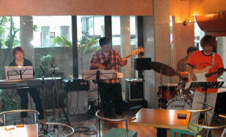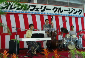 | 私の夏の最後のイベント「オレンジフェリー サンセット クルージング」。18:20からは、デッキですばらしい夕日を見ながら演奏しました。 藤田耕平B 岡田純二DR |