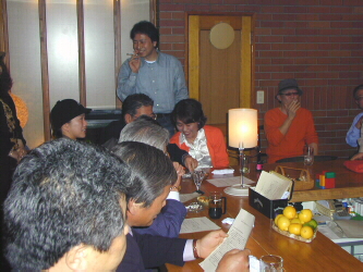 ガスライトでお酒と食事を楽しみながらのクリスマスパーティでした。参加メンバーの楽しい自己紹介、私の音楽仲間のスピーチや私のひき語り、楽しいゲームと盛りだくさん。田村さんによさこいソーラン踊りを教えてもらって、みんなで踊ったり(激しい踊りで腹ごなしになりました)、私のピアノでクリスマスソングを歌ったり、楽しいパーティでした。 |
