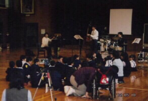 | 大瀬小学校ジャズピアノ訪問教室 | 内子幼稚園親子ジャズコンサート | 大瀬中学校ジャズコンサート | ||