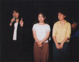 チェスナッツ・シンガーズは1999年12月にスタートしたヤマハPMSゴスペル科の私のクラスの生徒さんたちのゴスペルコーラスグループです。機会あれば出かけて行って歌っている内に、うまくなりたいという意識が強くなってきたみたいです。上達してきました。歌っているときの表情もすてきです。MDQ+2月に買いそろえたタキシード&ドレススタイルで出演。アンデス民族音楽「ロス コンドロス」、「チェスナッツ・シンガーズ」「MDQ+」の各演奏のあと、みんなで歌おうコーナー。出演者全員が会場のみなさんと一緒に「どこまでも行こう」を元気いっぱい歌いました。このコンサートは無料でした(整理券が必要)。会場一杯のお客さんでした。会場受付で「愛ウェーブ助成金2002」への寄付を募り、寄せられた寄付金は、愛媛県内で地道に社会貢献活動を行っているボランティア団体や市民活動団体などに贈られます。 |