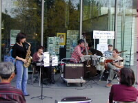 9月15日〜10月14日の1ヶ月間、県美術館南館(旧館)で子規100年祭特別企画展「共創・となりの子規さん」をしています。子供達の子規にまつわる作品を展示しています。その中の「子規を音で感じよう」コーナーで毎土曜日曜にギャラリー&ストリートライブをしています。俳句とジャズとは、即興性、コール&レスポンス、インタープレイなど共通点があると(少々こじつけですが・・・(^^;;;)思い、私が子規100年祭展示部会委員をしている関係で、企画提案しました。先週は”かちまちジャズ倶楽部”の「誠組」と「ジ・アート・オブ・ザ・クインテット」がギャラリーに出演しました。県美での演奏というのは初めてらしくなかなか規制があったりするのですが、これを機会に音楽もできる美術館になれば、と思っています。(2001年9月20日記) |