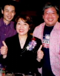 | チェスナッツ・シンガーズは1999年12月にスタートしたヤマハPMSゴスペル科の私のクラスの生徒さんたちのゴスペルコーラスグループです。機会あれば出かけて行って歌っている内に、うまくなりたいという意識が強くなってきたみたいです。上達してきました。歌っているときの表情もすてきです。MDQ+2月に買いそろえたタキシード&ドレススタイルで出演。アンデス民族音楽「ロス コンドロス」、「チェスナッツ・シンガーズ」「MDQ+」の各演奏のあと、みんなで歌おうコーナー。出演者全員が会場のみなさんと一緒に「どこまでも行こう」を元気いっぱい歌いました。このコンサートは無料でした(整理券が必要)。会場一杯のお客さんでした。会場受付で「愛ウェーブ助成金2002」への寄付を募り、寄せられた寄付金は、愛媛県内で地道に社会貢献活動を行っているボランティア団体や市民活動団体などに贈られます。 |