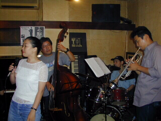 ただいま練習終わってみんなでわいわいやってます゜今日は西条の泰さんがボーカルのたにもとさんというかたをつれてあそびにきてくれました。みんなに1回ぐらいメールいれてみんかい!と言われて必死でなれない初メールをいれてみました。・・・・・山本慎二(ジャズ切磋メーリングリストより抜粋)
