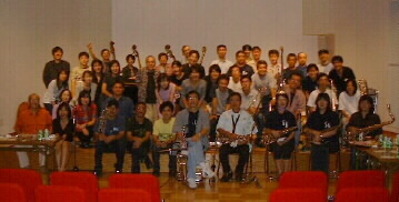 当初は1000円分のものを用意する予定でしたが、当日、簡単なものに変更致しましたので、参加費を300円に変更させていただきました。差額の700円は、エスパス21から各バンドの代表の方に、郵送にて返金させていただきますので、よろしくお願いします。最後に撮った集合写真を添えました(写ってない方、ごめんなさい)。