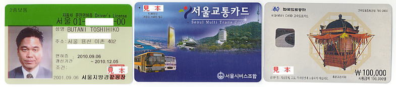 *左から、@2001年9月6日に韓国で取得した車の免許証 (書き換えは2010年9月6日〜12月5日とある。韓国でも免許証の写真はどうも写りが悪い?)