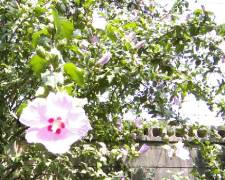 ムグンファ(むくげ)が最後の薄い赤紫の花を開いています。