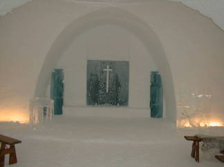 氷で建設されたアイスホテル/寝袋持参で泊まれるよ。